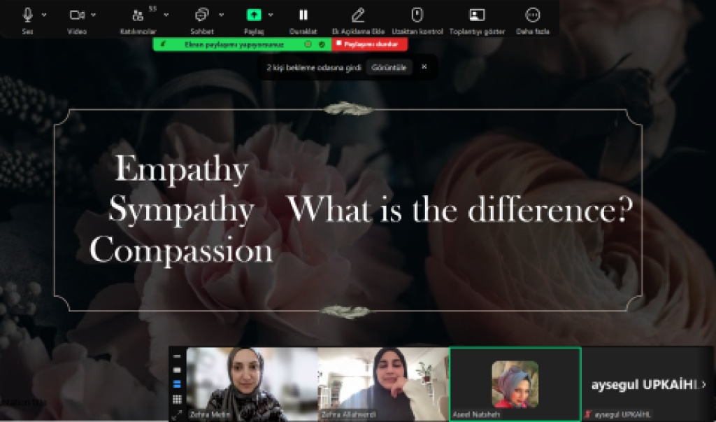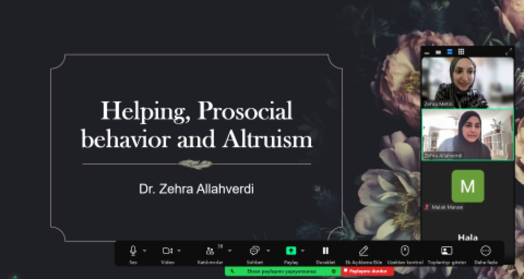 Nisan ayının en dikkat çekici etkinliklerinden biri, gerçekleştirdiğimiz uluslararası web semineri oldu. VirtueSchool projemiz kapsamında, Ankara Sosyal Bilimler Üniversitesi Psikoloji Bölümü Dr. Öğretim Üyesi Zehra Allahverdi’yi çevrim içi oturumumuzda konuk ettik. Sunumunda, yardımseverliğin, karşılıksız iyilik yapmanın ve fedakârlığın bireysel gelişimdeki rolünü bilimsel bir yaklaşımla ele aldı. İyilik yapmanın psikolojik iyileştirici etkisi, öğrencilerimiz için ilham verici bir bakış açısı kazandırdı.